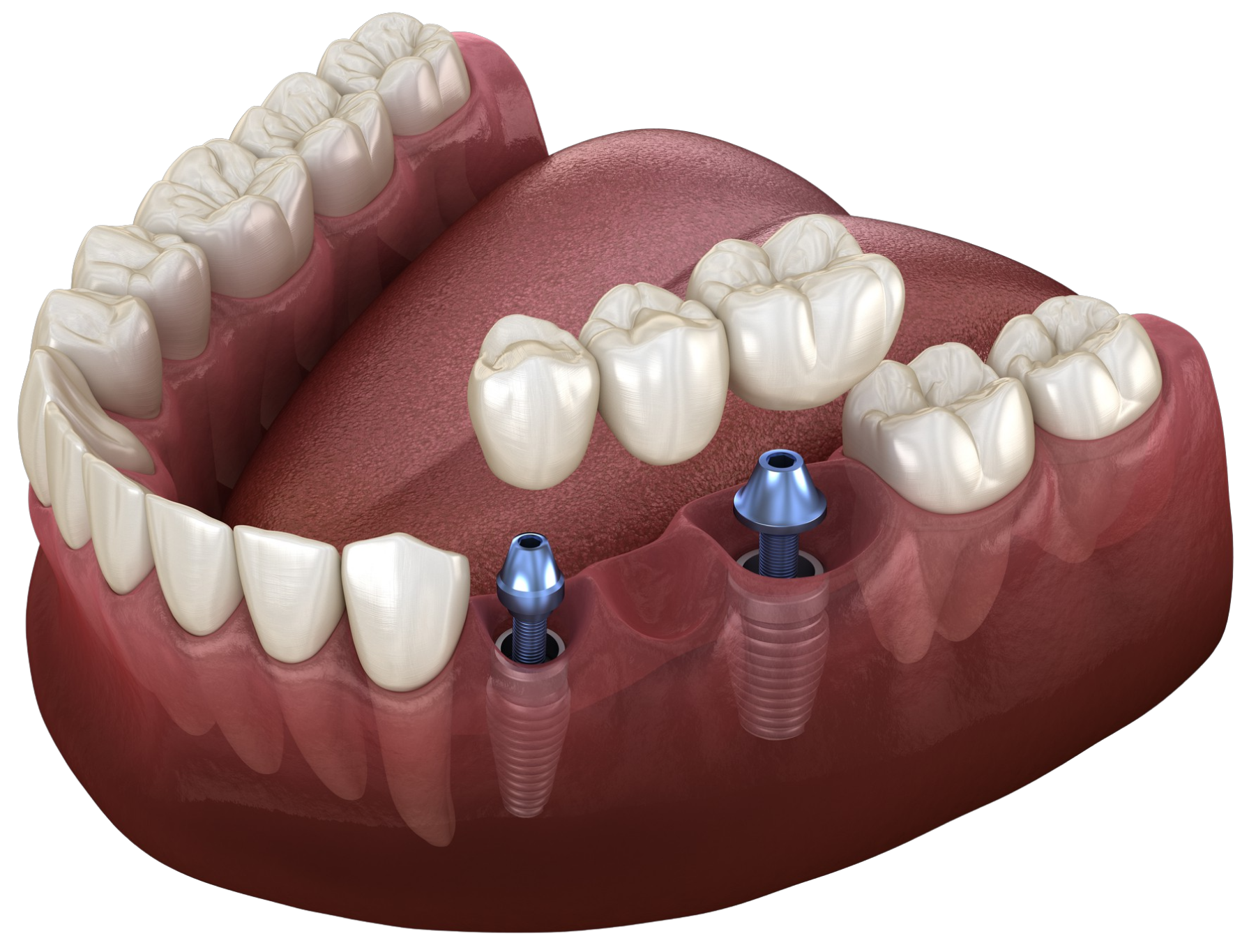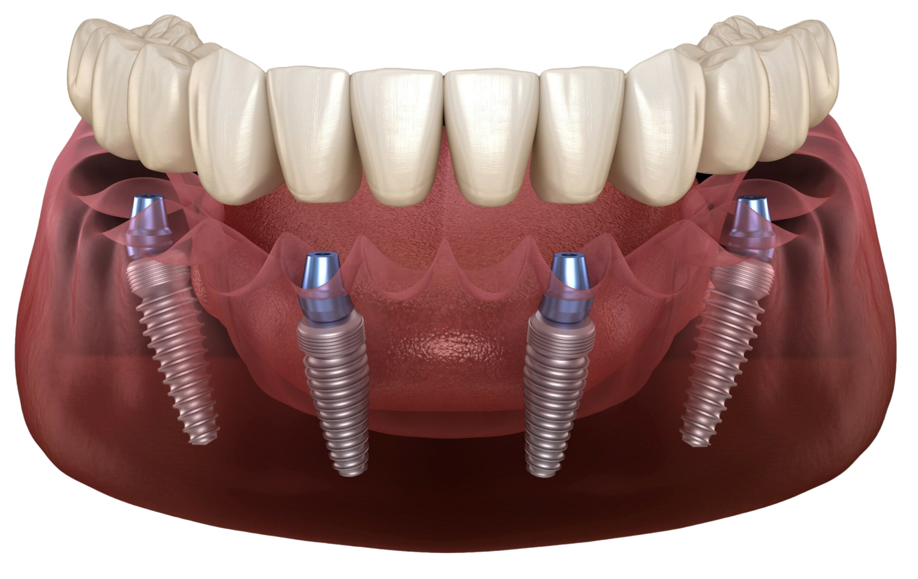 Применяется установка протеза челюсти на 4 имплантах (All-on-4)